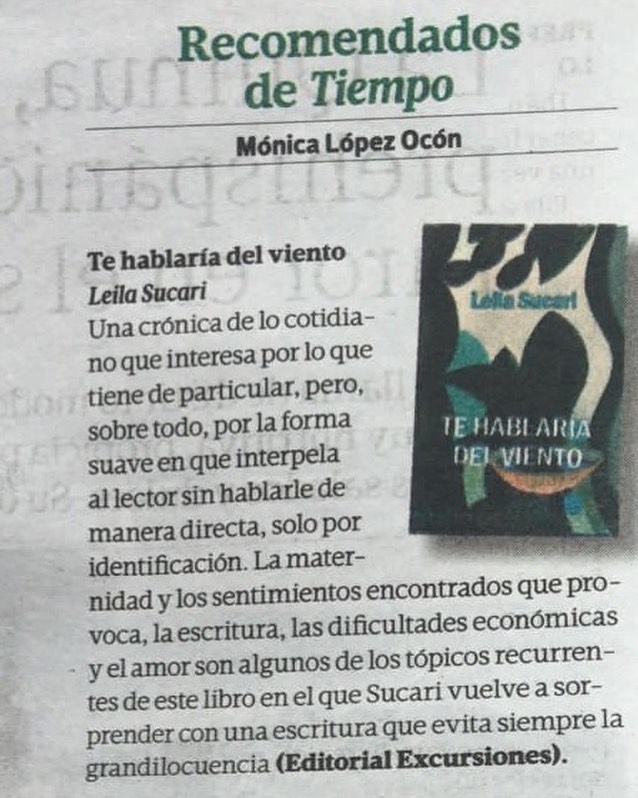 “Te hablaría del viento” entre los recomendados de Diario Tiempo Argentino por Mónica López Ocón, 10/02/2021